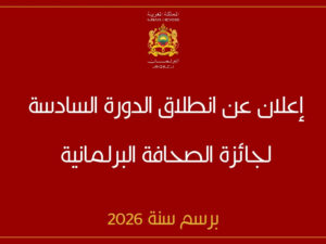 يعلن البرلمان بمجلسيه مجلس النواب ومجلس المستشارين عن انطلاق الدورة السادسة لجائزة الصحافة البرلمانية برسم سنة 2026 والتي يتم تنظيمها طبقا لقرار مكتب مجلس النواب ومكتب مجلس المستشارين، لتشجيع وتكريم الكفاءات الإعلامية المغربية، اعترافا بجهودهم الفردية أو الجماعية، في المساهمة في تطوير العمل البرلماني والتعريف به وتعزيز المشاركة السياسية وترسيخ دولة المؤسسات.