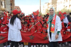 وقد شارك في هذا الاحتفال البهيج أطر المؤسسة وتلامذتها إلى جانب آباء وأولياء الأمور، حيث جاب الجميع الشوارع المحاذية للمؤسسة في موكب احتفالي مهيب، رافعين الرايات الوطنية والمصاحف الشريفة وصور صاحب الجلالة الملك محمد السادس نصره الله وأيده، مرددين النشيد الوطني المغربي وأناشيد المسيرة الخضراء التي صدحت بها الحناجر في مشهد جسّد عمق الانتماء وروح الوطنية الصادقة.