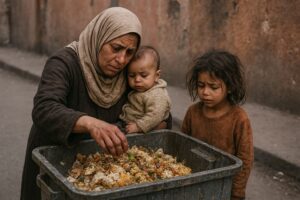 تجمد الزمن للحظة… مشهد لا يُنسى. كيف لأمٍّ في بلد الكرم والجود أن تجد نفسها مضطرة لإطعام أطفالها من بقايا الطعام؟ كيف وصلت إلى هذا الحال؟