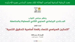 تحت الرعاية السامية لصاحب الجلالة الملك محمد السادس نصره الله، ينظم مجلس النواب، يوم الأربعاء 10 دجنبر 2025 بمقر المجلس بالرباط، النسخة الثانية من المنتدى البرلماني السنوي للمساواة والمناصفة، تحت شعار “التمكين السياسي للنساء رافعة أساسية لتحقيق التنمية”.
